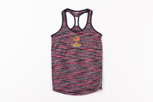 - Racerback design features contrast flatlock seams along the armholes and neckline.